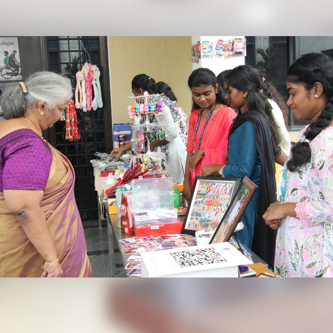 The market provided a lively platform for women to showcase and sell their products. Several stalls displayed a variety of items including sarees, accessories, food products, candles, handmade gifts, and mehendi services. Students, faculty members, and visitors enthusiastically explored the stalls and supported the entrepreneurs.