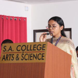 The School of Management through the Department of Business Administration, at S.A College of Arts & Science organized an expert lecture on “Managing Change and Organisational Development” on 25 February 2026 at 10:00 AM in the SACAS Auditorium. The session was delivered by Mr. Mani Nachiyappan N., Manager–HRD at Hyundai Motor India Ltd..