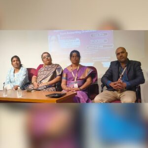The first session, “Financial Scams: Lessons from Famous Indian Cases” (12:00 PM–1:00 PM), was delivered by Mrs. U. Suganya Udayasankar, Advocate, High Court. She explained major Indian financial scam cases, highlighting legal, ethical, and financial implications, common fraud patterns, and the importance of vigilance and ethical compliance. The second session, “Expectations of Industry Professionals from Accounting Graduates” (1:00 PM–2:00 PM), was handled by Mrs. Nagalakshmi Chandrasekar, B.Com, MLM, Certified POSH Trainer, who shared insights on industry-required skills, professional attitude, and workplace expectations.