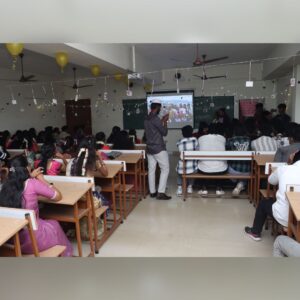 Under the guidance of the Head of the Department, Mr. Chandrasekar P., the programme featured speeches, reflections, and interactive moments. Junior students expressed gratitude to their seniors, while the graduating students shared their memorable experiences and learning journey.