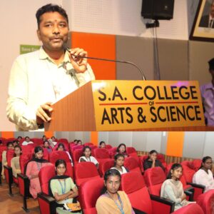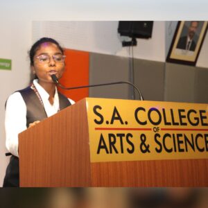 The Department of English at S.A. College of Arts & Science, in association with The Renaissance, hosted its second conclave, “Beyond Words: A Celebration of Language and Literature,” on March 18, 2026, at the SACAS Preview Theatre. The event began with an invocation and welcome address by the Head of the Department, followed by the introduction and felicitation of distinguished speakers.