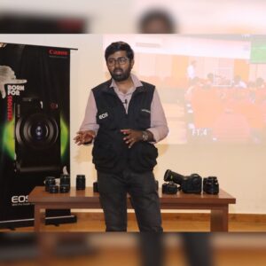 Mr. S. Aravind delivered a detailed lecture on the basics of DSLR cameras and explained the various operations of the latest DSLR cameras. Mr. V. Veereswaran explained videography operations using the latest Canon cameras. The event was conducted successfully, and the students benefited by gaining hands-on experience with the latest cameras.