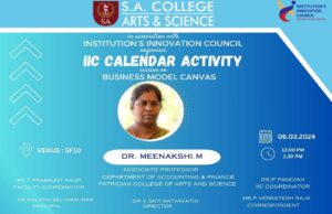 The S.A. College of Arts & Science, in association with the Institution Innovation Council (IIC), organized an IIC Calendar Activity session on “Business Model Canvas.”