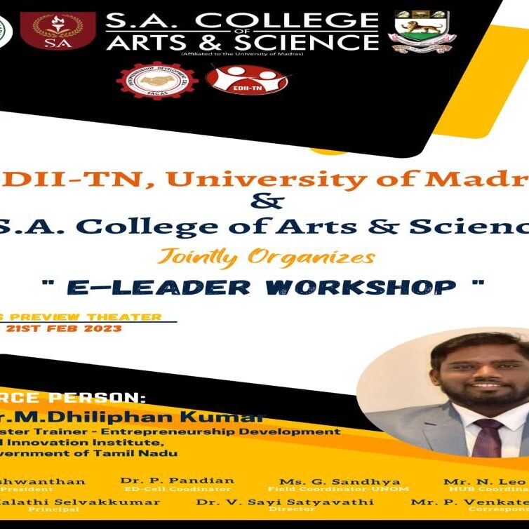Entrepreneurship development cell in S.A. College of Arts & Science, EDII-TN, and university of madras jointly organized E-LEADER workshop on…