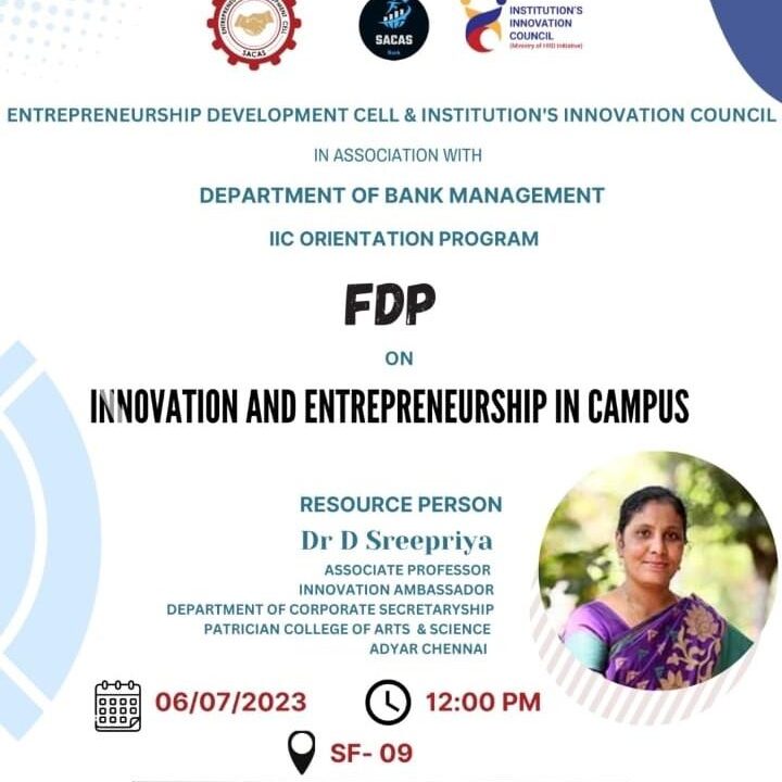 ED Orientation Program 2023–24 The Entrepreneurship Development Cell and the Department of Bank Management of S.A. College of Arts & Science, in…