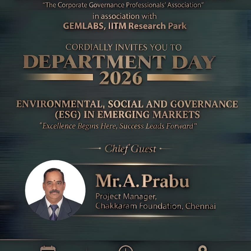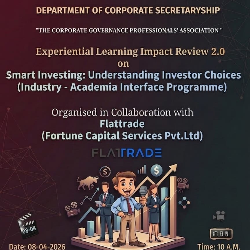 The Corporate Governance Professionals Association, under the aegis of the Department of Corporate Secretaryship, in collaboration with Flattrade and Fortune Capital Services Pvt. Ltd., is organizing the “Experiential Learning Impact Review 2.0 on 08.04.2026