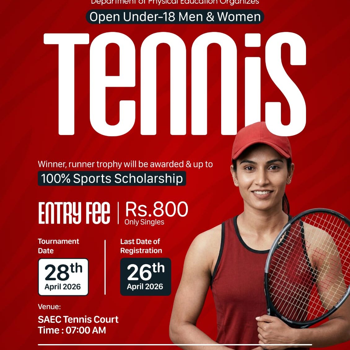 The Department of Physical Education at S.A. College of Arts & Science proudly presents Open Under-18 Tennis Tournament (Men & Women) on 28.04.2026