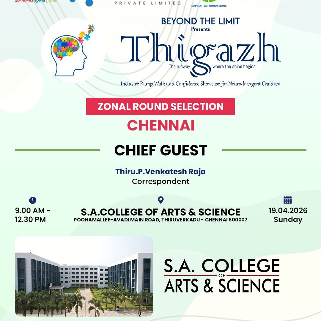 S.A. College of Arts & Science proudly serves as the Venue Partner for the zonal level selections of “Beyond The Limit – THIGAZH 2026 on 19.04.2026