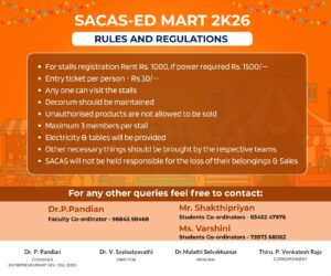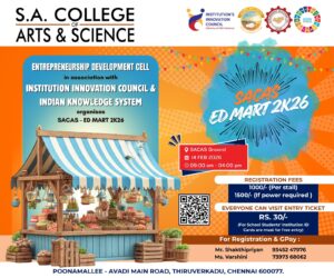 Department of Bank Management of S.A. College of Arts & Science, and in association with the Institution’s Innovation Council (IIC) and the Indian Knowledge System (IKS) , proposes to organize SACAS – ED MART 2K26