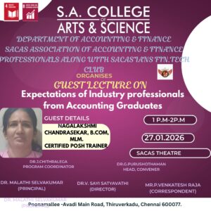 Department of Commerce (Accounting & Finance) of S.A. College of Arts and Science Guest Lecture on 27.01.2026