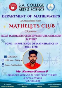 Department of Mathematics in association with MATHLETS CLUB organises PI day celebration and Mathlets club Investiture ceremony on 12.03.2026 in SACAS auditorium.