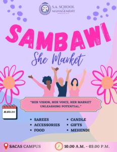 “SAMBAWI “women’s forum of School of Management , S.A. College of Arts & Science, organises – “She Market”, a vibrant marketplace celebrating women entrepreneurship, creativity, and empowerment on 11/03/2026,from 10.00am to 3.00pm at SACAS Campus.